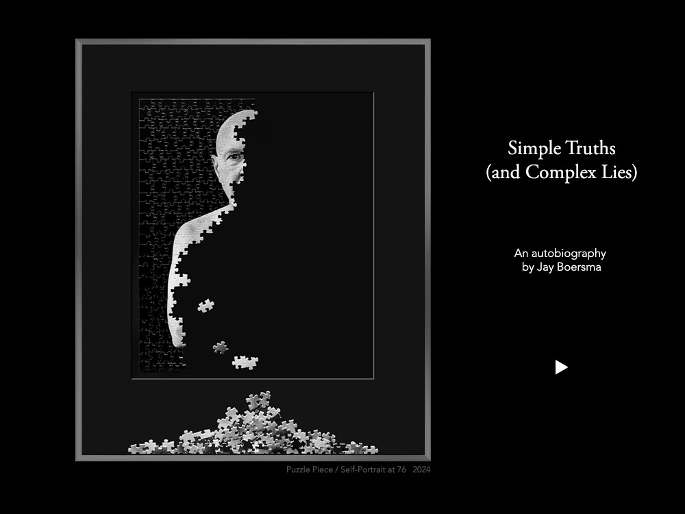 A number of years ago, I decided take a divergent path from my usual approach to photography, a path that would allow me to be less subtle, more playful, and to take more risks. The Simple Truths (and Complex Lies) project is the result.