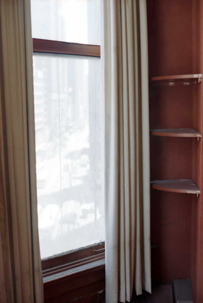 The fourteen floors inside of the building, declining since the 1960's, were vacant but for a handful of lingering occupants. It had suffered an unfortunate amount of cheap "remodeling" on the lower floors but was largely untouched on upper ones. Untouched by human hands, that is, but touched greatly by water coming in through deteriorating windows, from leaking plumbing seeping through the walls and floors, from decades of urban grime and touched, mostly, by the passage of time.