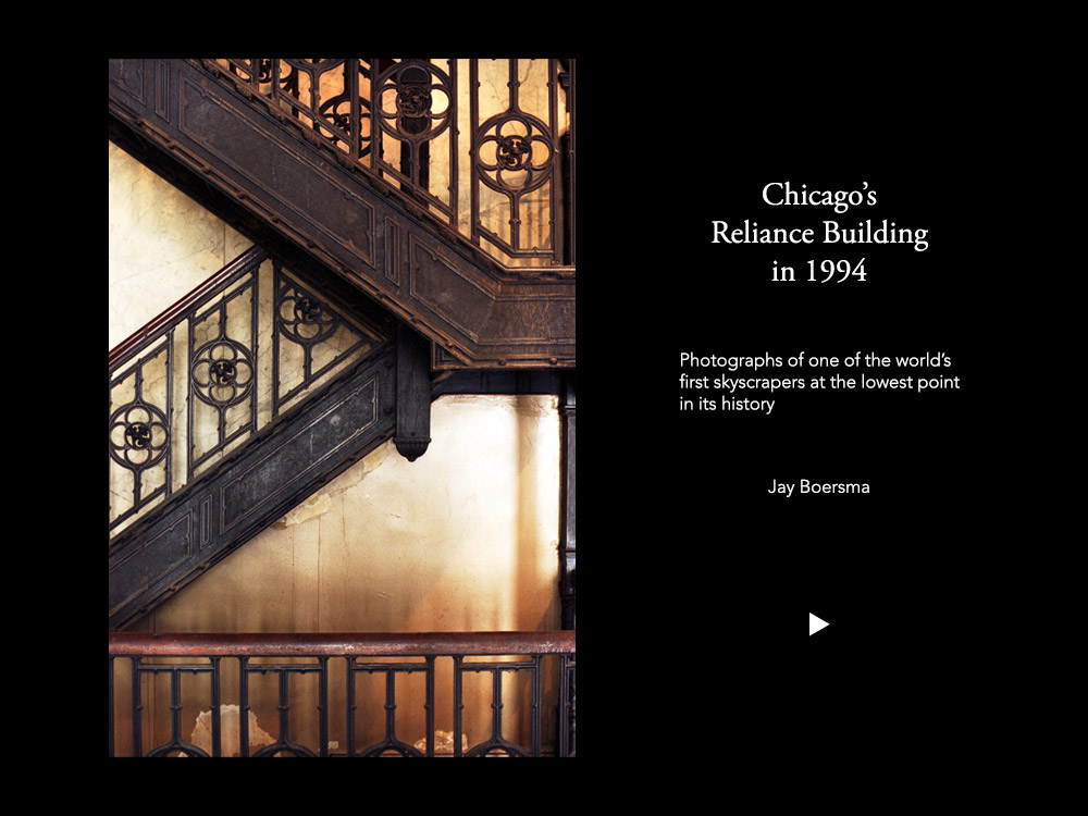 This collection of photographs was made during the lowest point in the Reliance Building's history, the period just prior to its restoration and rebirth.